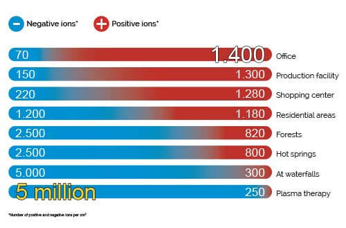 Обикновено, във въздуха, който дишаме има около 500-1000 отрицателно заредени йони на кубичен сантиметър. В близост до водни източници те са около 4000 в см3. А Gharieni PLT произвежда 5 000 000 отрицателно заредени йони на см3!